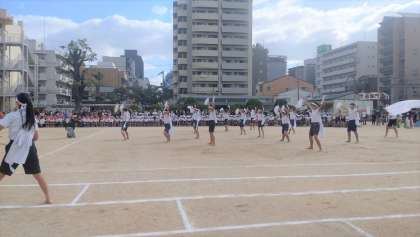 応援団も毎日、放課後、熱心に練習していました。赤組白組ともに、本番も声がよく出て、ふりもしっかりと決まっていました。競技中の各学年に対する応援も素晴らしかったです。