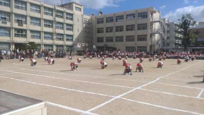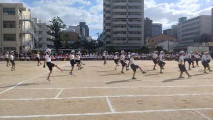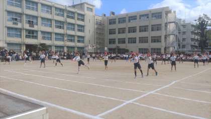 3年生の団体演技は軽快なリズムダンスでした。難しいステップのあるダンスを全身を使って踊っていました。場所移動なども工夫して演技ができていました。