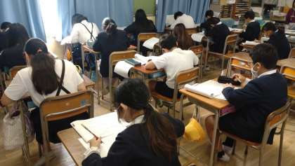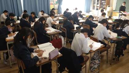 本日、2限目に5・6年生による漢検が行なわれました。子どもたちは、とても集中して取り組んでいました。写真は、熱心に取り組んでいる5・6年生の子どもたちの様子です。