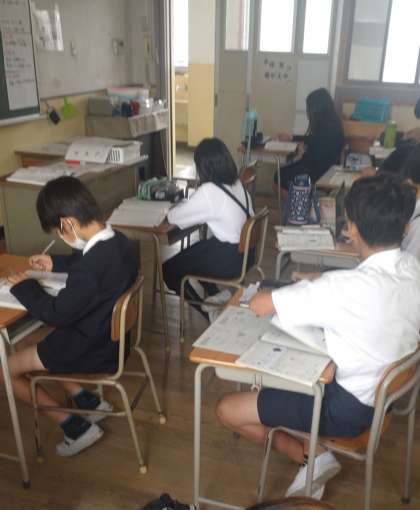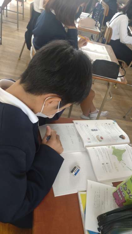 6年生が算数で、単元の学習のまとめに取り組んでいます。これまでの学習を活用して課題を解決しています。