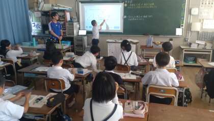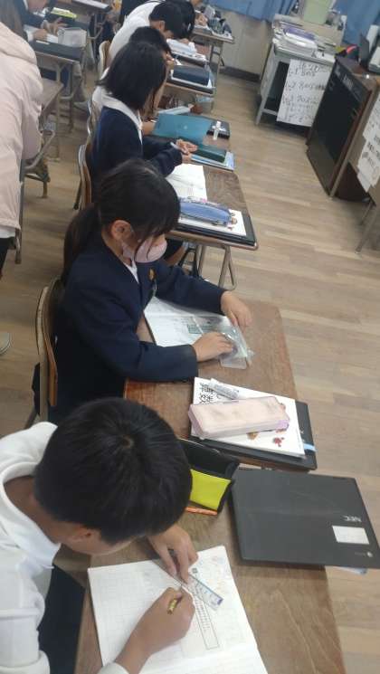 4年生が算数の学習に取り組んでいます。この時間は、垂直について学んでいます。