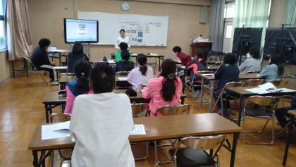 放課後、教育委員会より講師の先生に来ていただき、外国語研修が行なわれました。外国語活動、外国語科の学習の進め方や模擬授業などを通して、外国語の学習についての理解を深めました。