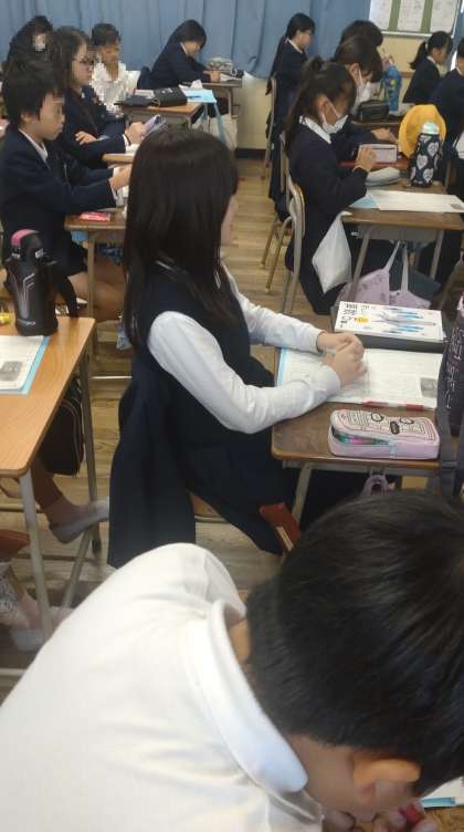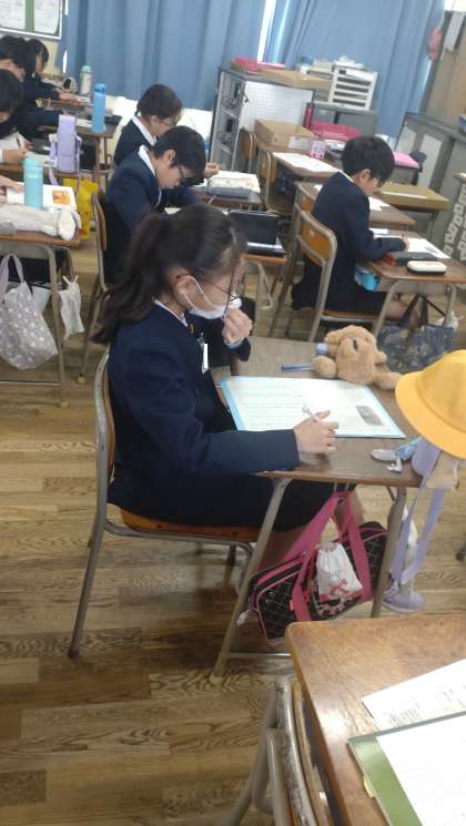 5年生が、国語で物語文「大造じいさんとガン」の学習に取り組んでいます。行動や会話などから主人公の人物像を想像し、考えたことを伝え合う学習です。