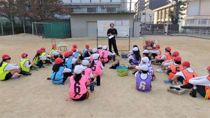 子どもたちがチームで協力してゲームに取り組みました。最後の話し合いでは相手チームの良かったプレーについて発表しました。