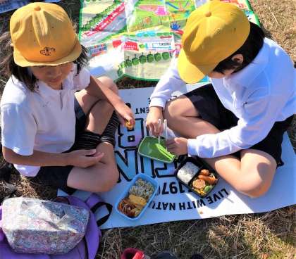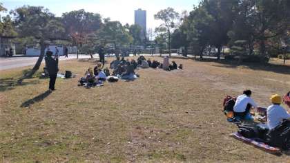 図工展を後にして、大阪城公園の芝生でみんなでお弁当を食べました。
