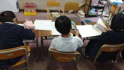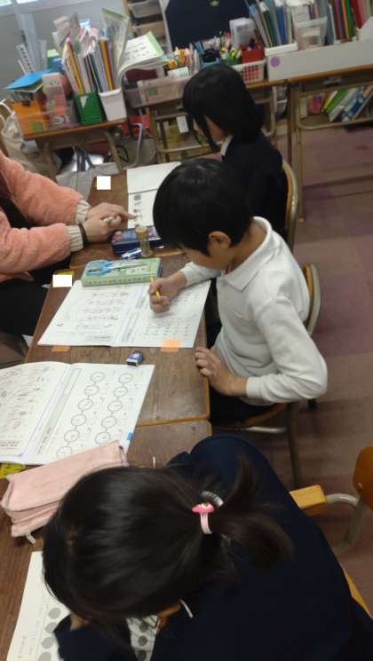 冬休み明け、なかよし学級の子どもたちが、算数の九九や国語の文章の読み取りなどのそれぞれの課題に熱心に取り組んでいます。