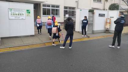 1月15日(水)、本日は、英語モジュール、発育測定4年、区教員研究発表会のため全学年給食後下校(13:30頃)します。地域の子ども見守り隊、PTAの方々の見守りの下、今朝も子どもたちは元気に登校しています。