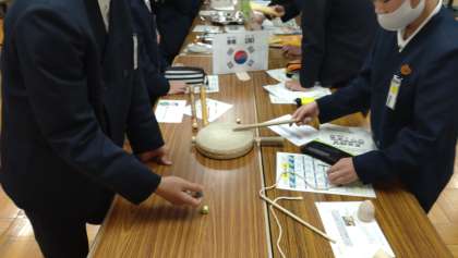 タイ文字や韓国のハングル語を書くコーナーもあります。それぞれの国の楽器の音を鳴らしたり、玩具で遊んだりしています。食器などの生活用具も展示してあります。