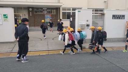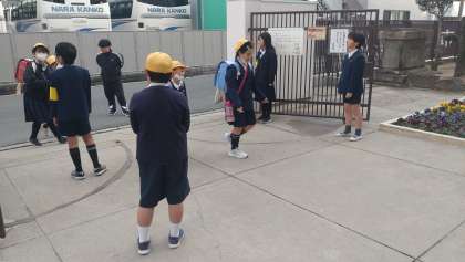 1月21日(火)朝の登校〜あいさつ運動・生活点検週間