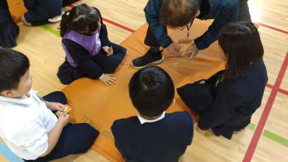 1月21日(火)1年生 昔遊び〜地域の老人会の方々との世代間交流5