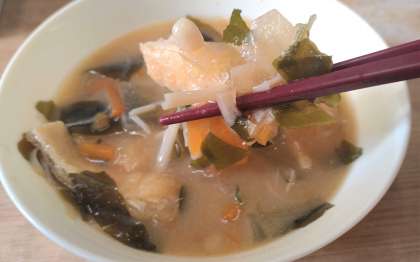 今回のみそ汁は、にぼしからとった「にぼしだし」を使っています。
