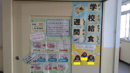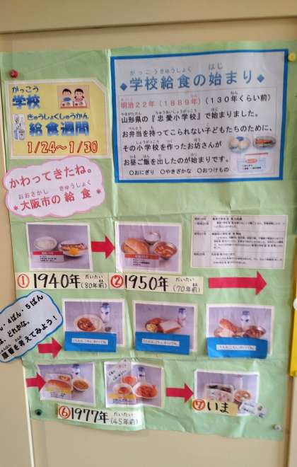 全国学校給食週間(1/24〜30)がはじまりました。写真は、職員室横には、学校給食の歴史や給食調理員さんのコメントなどが展示してあります。ご来校の機会がありましたらぜひご覧ください。