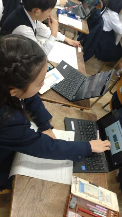 一人一台端末PCも活用して、食材の情報を調べました。