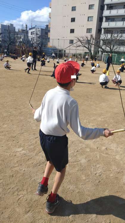 子どもたちはリズミカルに跳んでいます。チャレンジ終了後も縄跳びを練習する子が増えてきました。