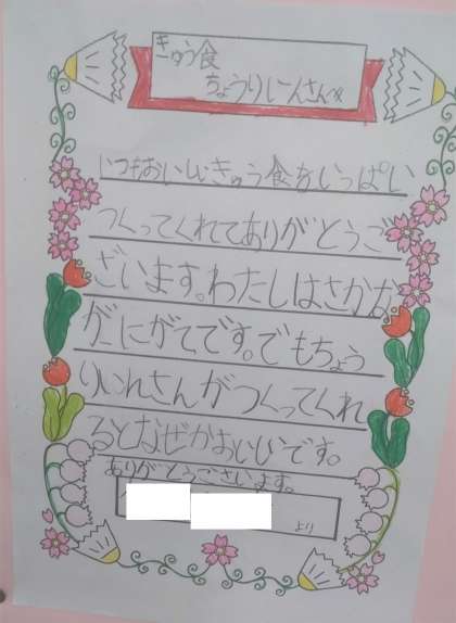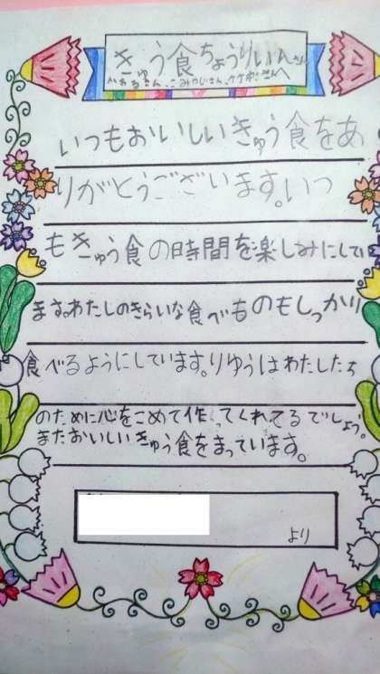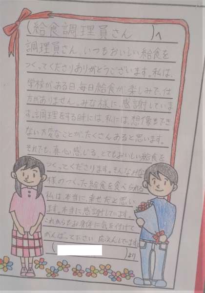 2月4日(火)全国学校給食週間〜給食調理員さんへのお手紙2