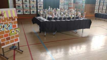 続々と立体作品が搬入されています。平面作品同様、子どもたちの個性的な発想が生かされた作品が展示されています。写真は、1年生の立体作品です。ぜひ鑑賞日に、お近くでゆっくりご覧ください。