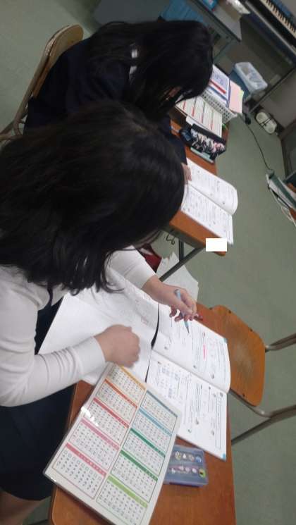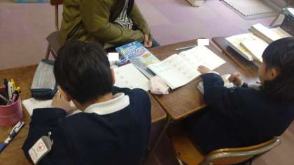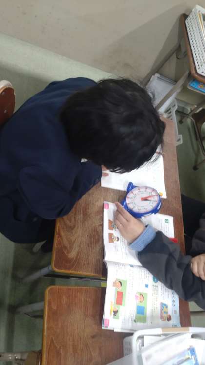 なかよし学級で、算数の学習に取り組んでいます。たし算や分数の計算、時計の読み方の学習など、それぞれの課題解決に熱心に取り組んでいます。