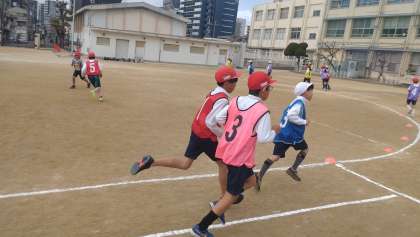 4年生も体育で持久走に取り組んでいます。以前紹介しましたが、現行の学習指導要領では無理のない速さで中学年では3〜4分程度の持久走と示されており、発達段階に合わせて時間が長くなっていきます。