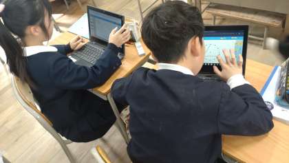 今日の3限目に、3年生で算数の公開授業がありました。教育委員会から講師の先生に来ていただき、「三角形を調べよう」の学習に取り組みました。一人一台端末PCを活用して、辺の長さに着目して三角形を仲間分けする学習をしました。子どもたちは、とても熱心に取り組んでいました。
