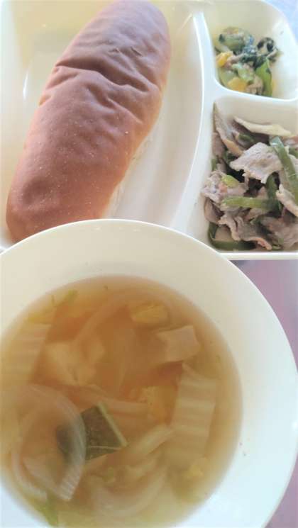 今日の給食は、豚肉🐖のオイスターソース焼き、中華スープ、ツナとチンゲンサイのいためもの、黒糖パン、牛乳🥛です。