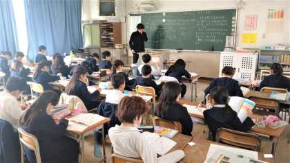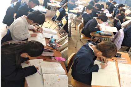 写真は、子どもたちが、とても集中して作図に取り組んでいる様子です。