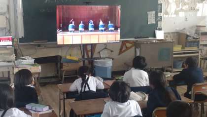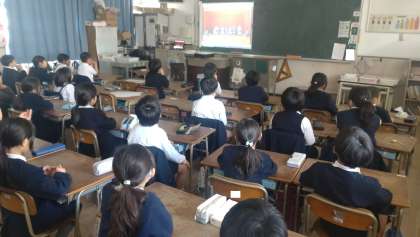 今日の2限目に「なかよし発表会」がありました。なかよし学級の子どもたちが手話やハンドベル、太鼓などを発表しました。写真は、2年生の子どもたちが太鼓の演奏を見ている様子です。