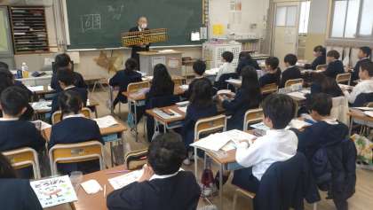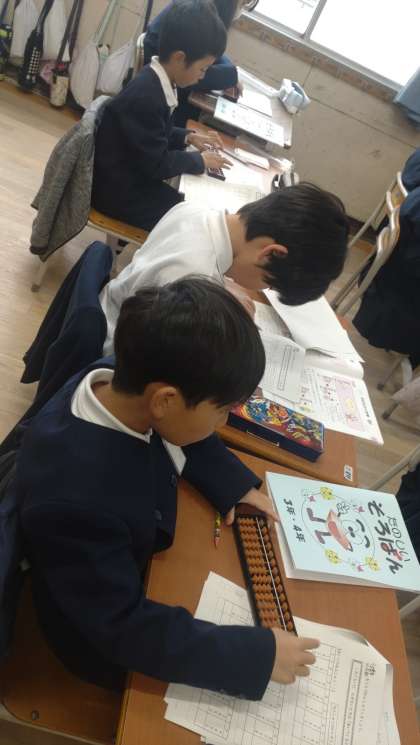 子どもたちは、ゲストティーチャーの先生のお話をしっかりと聞いて、そろばんに取り組んでいました。