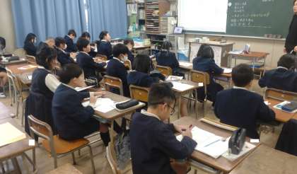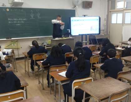 4年生が算数で「直方体と立方体」の学習に取り組んでいます。学年3分割の少人数で立体図形の特徴や性質について学んでいます。