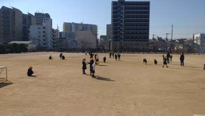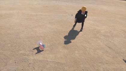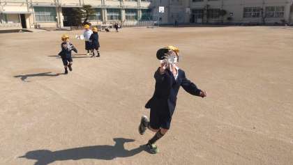 1年生が生活科で、風を利用したおもちゃをつくり、友だちと一緒に遊びを楽しみました。風車や風で動く車など、子どもたちは夢中になって遊んでいました。