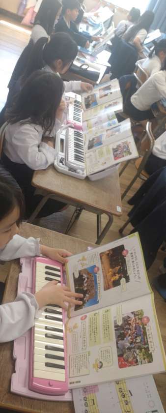 4月21日(月)2年生 音楽〜鍵盤ハーモニカ演奏と鑑賞学習