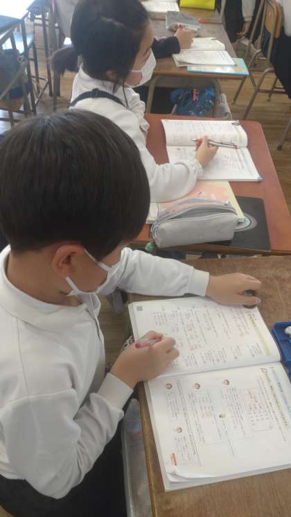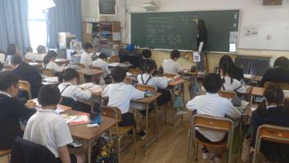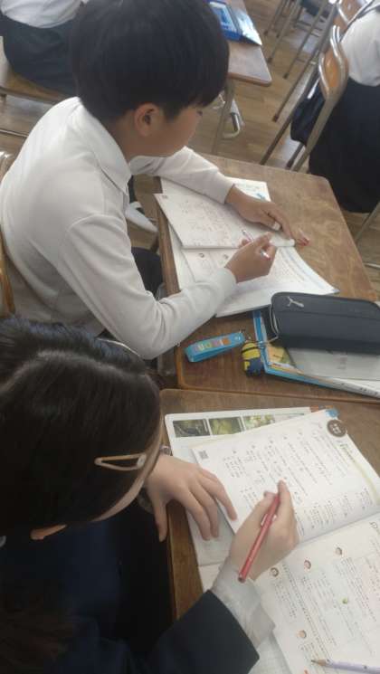 5年生が算数で「整数と少数」の学習に取り組んでいます。この時間は、これまで学習した内容を振り返って、学習内容の定着を確かめています。