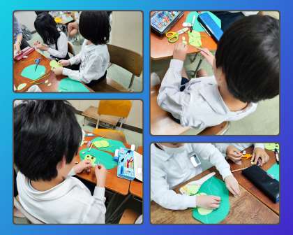 まずは、「そらまめくんのベッド」の絵本の読み聞かせをしました。そのあと、縦割り班編成をしたあと、教室移動をして、そらまめくんのベッドの製作をしました。今回は、完成できなかったので、次回のなかよしタイムで完成させたいと思います。