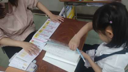 なかよし学級で漢字の学習に取り組んでいます。「点」「線」などの新出漢字を学んでいます。