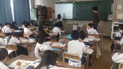 4年生が算数で「折れ線グラフと表」の学習に取り組んでいます。神戸とリオデジャネイロの気温の違いから、折れ線グラフの特徴や読み取り方を学んでいます。