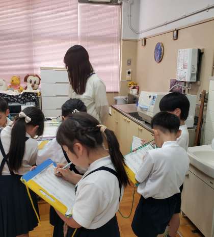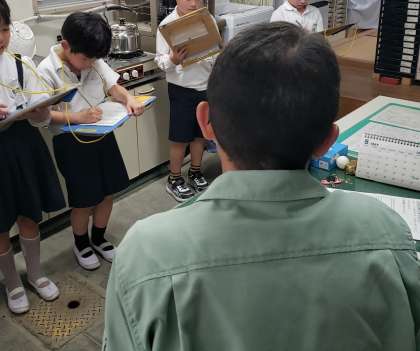 2年生が国語で、「はたらく人に話を聞こう」の学習に取り組んでいます。学校で働く人に話を聞いて、だいじなことを聞き取ることができるように学んでいます。写真は、校長室、保健室、管理作業員室でインタビューしている子どもたちの様子です。聞きたいことをしっかりとまとめて礼儀正しくインタビューできていました。
