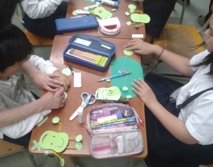 今日の2限目になかよしタイムがありました。今日は、各班でお互いの自己紹介と前回の続きである「そらまめくんのベット」の工作活動でした。声の大きさや目線などを意識してSST(ソーシャルスキルトレーニング)として、自己紹介に取り組みました。