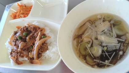 今日の給食は、タコライス、とうふともずくのとろり汁、にんじん🥕しりしり風、牛乳🥛です。