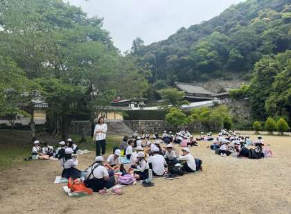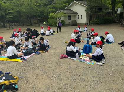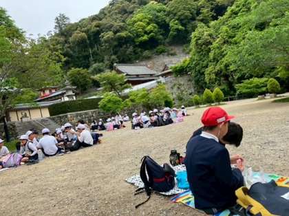 箕面の滝の見学の後、子どもたちが楽しみにしていたお弁当を食べました。