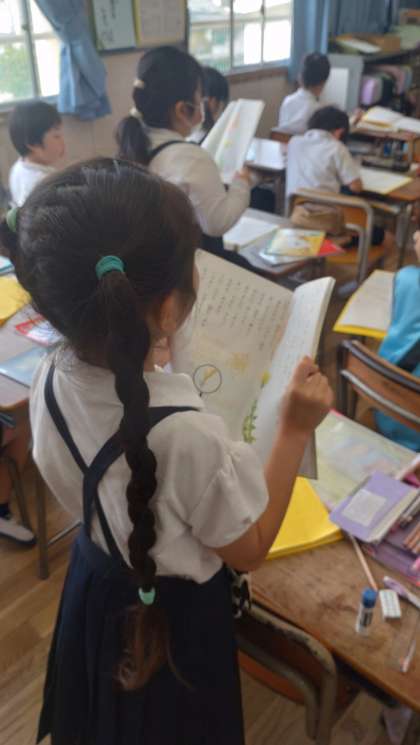 この時間の2年生は、国語で説明文の学習に取り組んでいます。単元「たんぽぽのひみつを見つけよう」で、順序を考えて読み、文章を読んで分かったことや考えたことを伝え合う学習です。