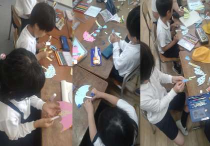 「 なかよしタイム」では、高学年のリーダーが下級生に優しく接したり、みんなで助け合ったりして楽しく活動しています。