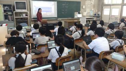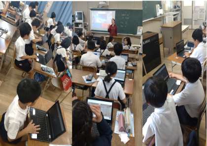 4年生の外国語の学習で、天気を伝える言語活動に取り組みました。一人一台端末タブレットPCを活用して、班対抗戦で楽しみながら学習しました。「sunny」,「 rainy」,「 cloudy」,「 snowy」,「 hot」,「 cold」など、C-NETの先生のネイティブな発音を聞きながら学ぶことができました。