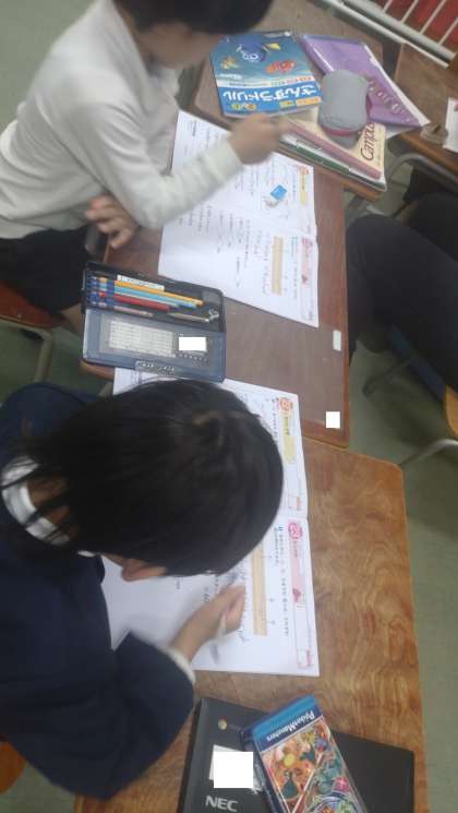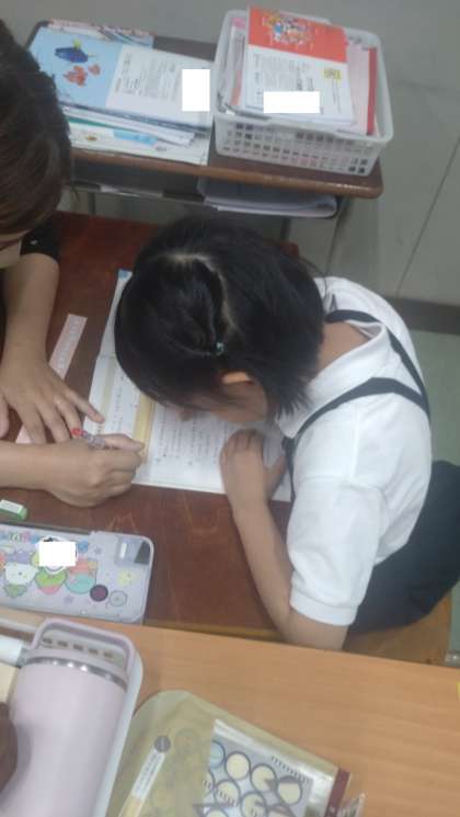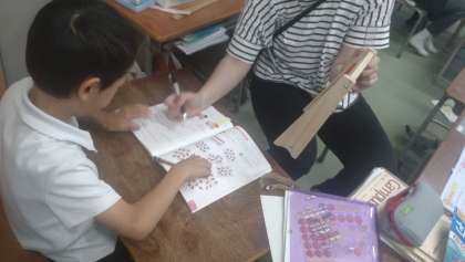 なかよし学級で、算数の学習に取り組んでいます。「長さ」や「たし算」など、それぞれの課題に熱心に取り組んでいます。