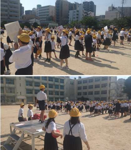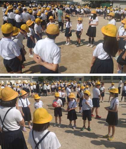 今朝は、児童集会がありました。たてわり班で、しりとりをしながらボールを回すゲームです。ホイッスルが鳴ったところでボールを持っていた人がアウトになります。6年生の班長を中心に、高学年の子どもたちがしりとりの言葉を思い出せない下級生の子どもたちをフォローしながらゲームをしている姿が印象的でした。集会委員会の子どもたちも頑張っていました。