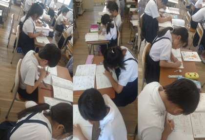 3年生が算数で「3けた−3けたのひっ算」の学習に取り組んでいます。写真は、真剣に集中して練習問題に取り組んでいる子どもたちの様子です。