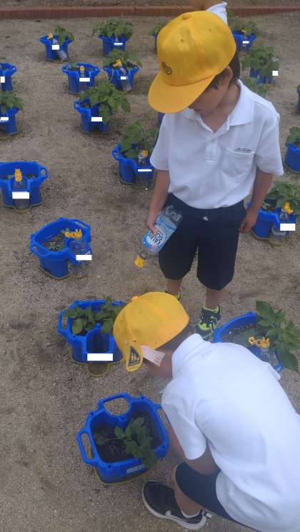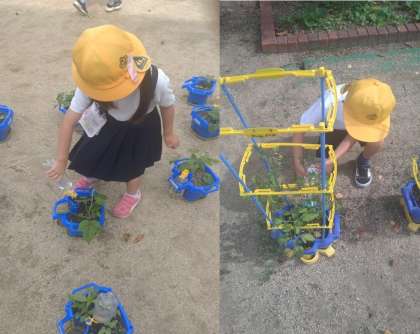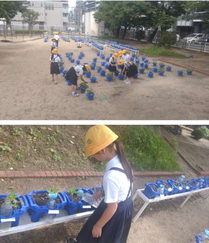 朝、子どもたちが熱心に水やりをしています。1年生は、あさがお、2年生は、ミニトマト、3年生はホウセンカと各学年の植物に水やりをしています。今後の天候不順に備えて、子どもたちは、水の量も工夫して水やりをしています。