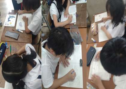 今日の5限目に教育委員会から講師の先生に来ていただき4年生の研究授業がありました。算数の単元「角の大きさ」で、180°よりおおきい角度を分度器を用いた角度の測定の仕方を考え、説明する学習内容でした。子どもたちはとても積極的に発表したり、自力解決で深く考えたりすることができていました。