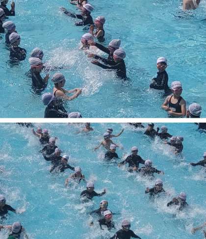 今日、2、3限目に、3年生のプール開きがありました。延期していたので子ともたちは大喜びでした。3年生では、低学年の水遊びの学習をふまえ、け伸びや初歩的な泳ぎ、もぐる・浮くことなどの基本的な動きや技能を学んでいきます。