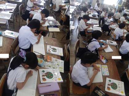 1年生が算数で、ひき算の学習に取り組んでいます。子どもたちは、しっかりとノートに課題を書き、課題解決に取り組んでいます。。