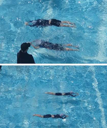 2限目に3年生がプール水泳に取り組みました。この時間は、初歩的な泳ぎを熱心に練習しています。写真は、「けのび」の練習に取り組んでいる子どもたちの様子です。