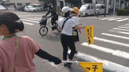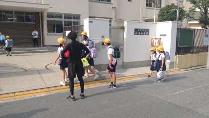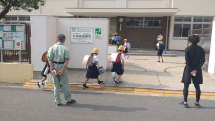 今朝も登校時間内に、子どもたちは笑顔で登校しています。下段の写真は、暑い中、毎日、子どもたちを見守っていただいている地域の見守り隊の方の様子です。各支部の見守り隊の方々ありがとうございます。